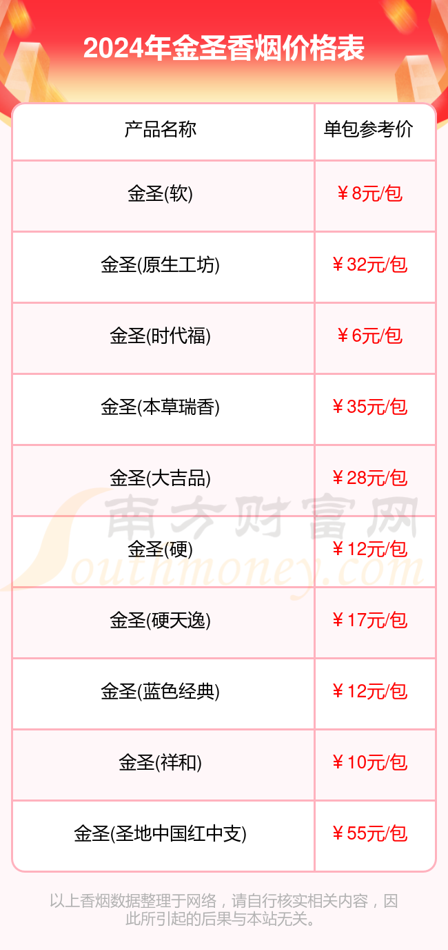 金圣香烟的价格因产品系列、规格和销售渠道的不同而有所差异,其价格区间广泛,既有适合大众消费的经济型产品,也有面向高端市场的精品烟,以下是几款热门产品的价格介绍: