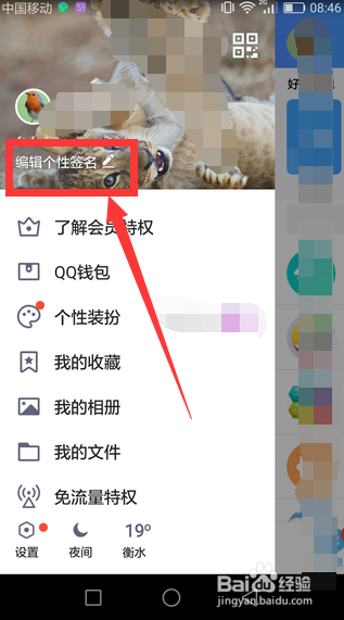3、在个人资料页面,找到并点击进入“个性签名”专栏。