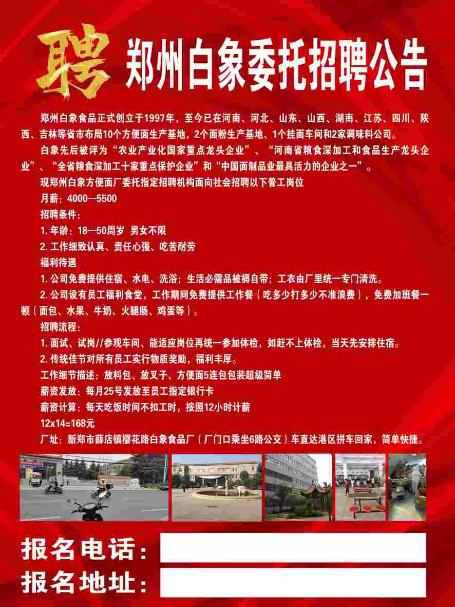 薛店工厂招聘启事