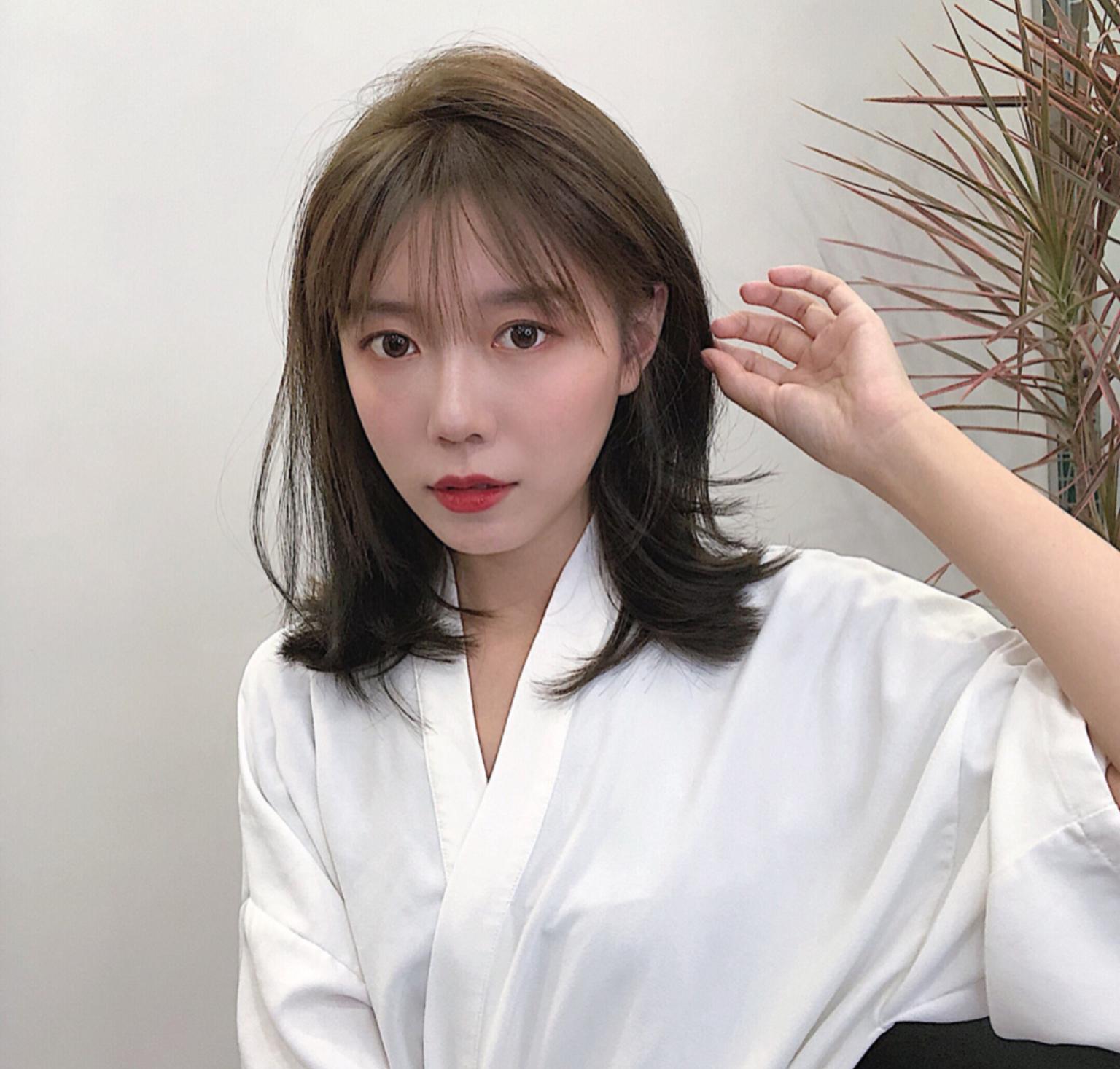 2、碎发刘海:随性自然,给人一种随性洒脱的感觉,适合各种发质和发量的女生。