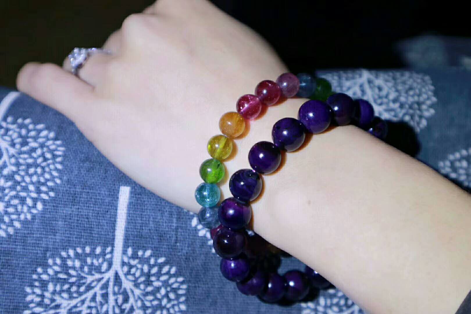 舒俱来是一种稀有且独特的宝石,学名为苏纪石,主要产于南非,其颜色丰富多样,从深紫到浅紫,蓝紫、红紫等色调不一,美丽的色泽和光泽使得舒俱来手链具有很高的观赏价值,舒俱来具有硬度高、耐磨、稳定的物理特性,成为制作手链的优质材料。
